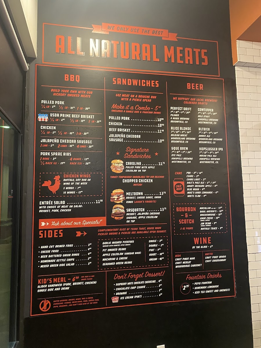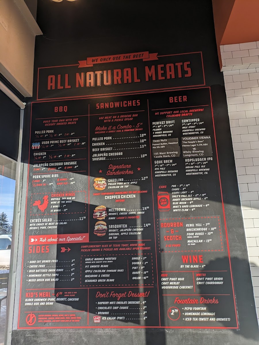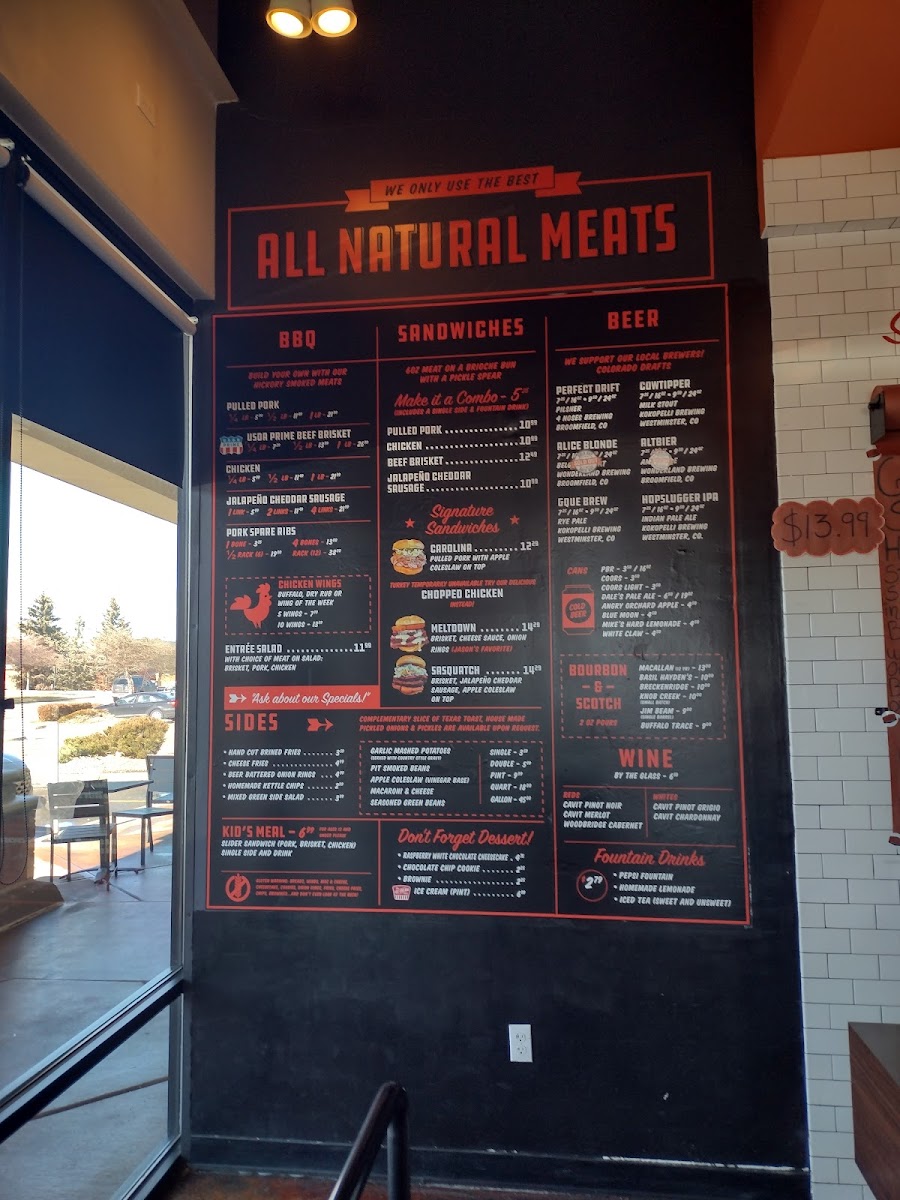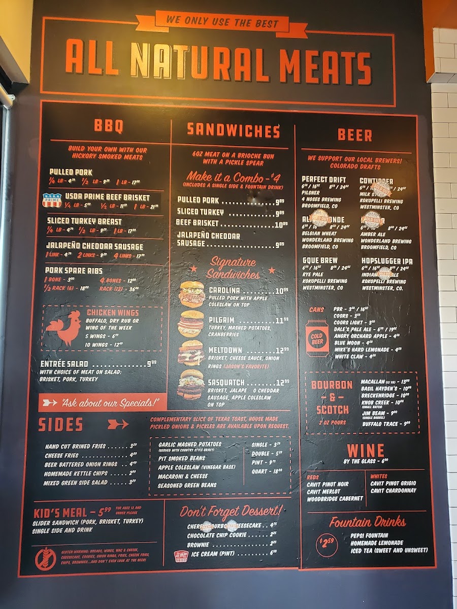 Expect dishes like tender pulled pork, smoky ribs, and savory brisket alongside comforting sides such as garlic mashed potatoes, mac and cheese, and pit-smoked beans. The menu extends to include flavorful chicken wings and specialty sandwiches, making it easy to find something that suits different tastes and cravings throughout the day.