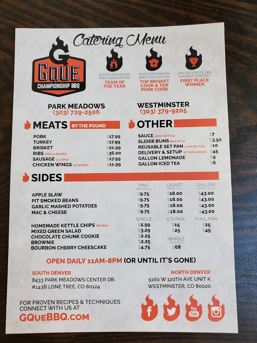 GQue BBQ Westminster Menu